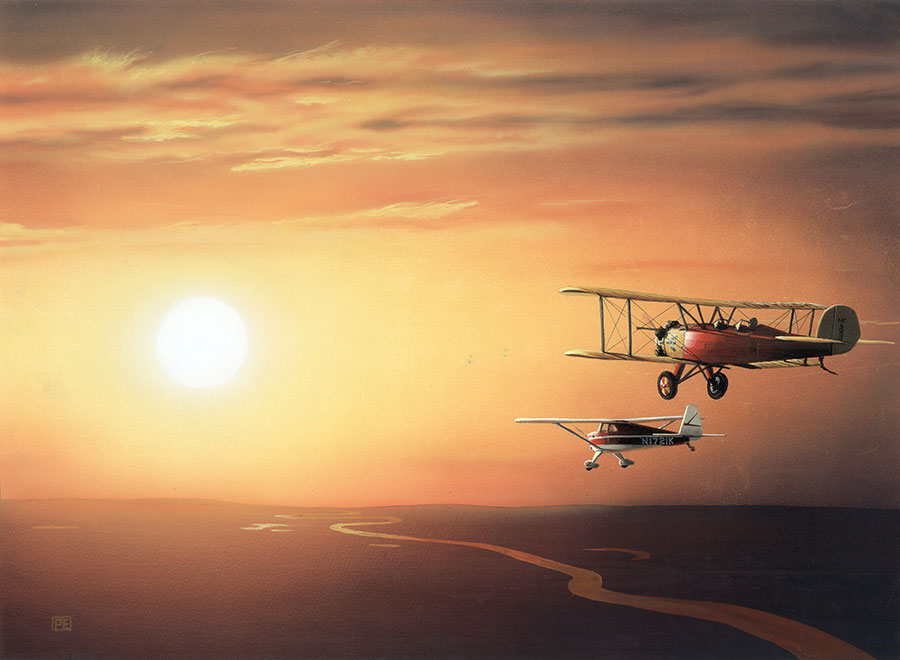 Tags: planet, biplane, sun, sky, sunset, river