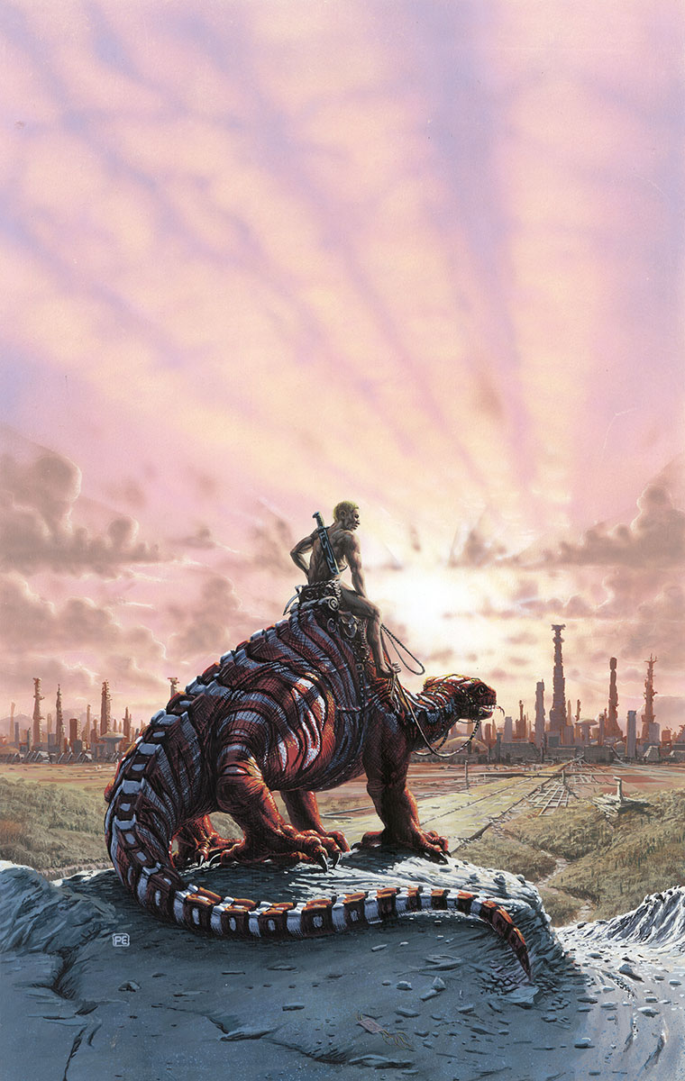 Tags: lizard, rider, cityscape, landscape